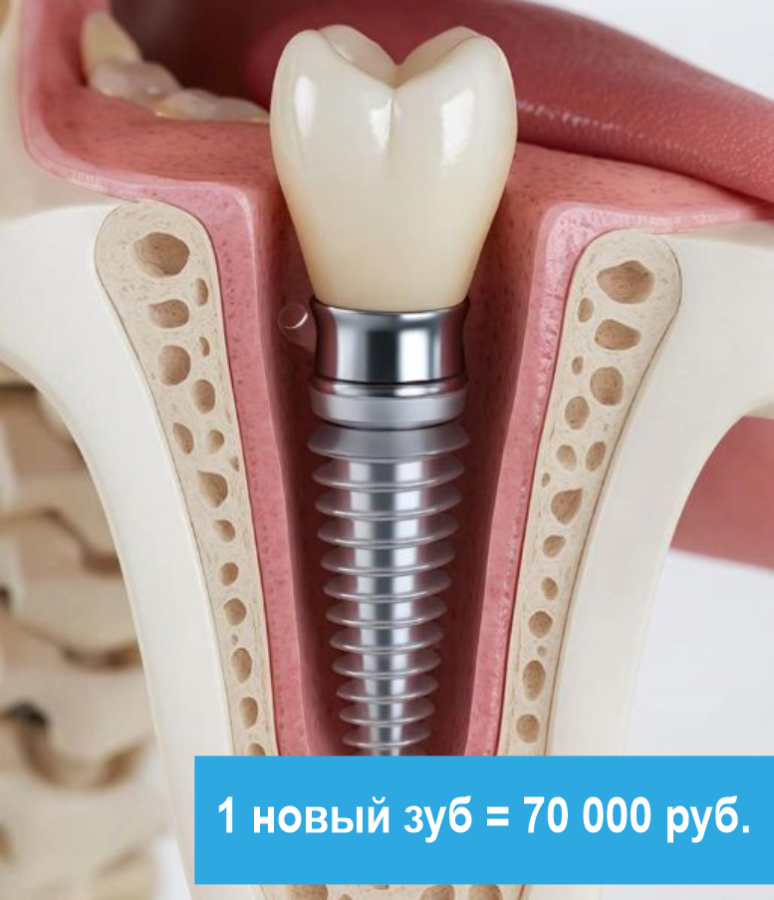 На данный момент у нас проходит акция Установка импланта всего за 70 000 рублей.